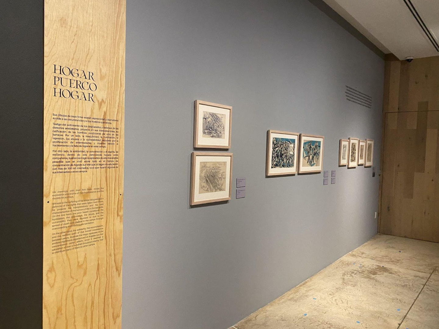Selección de dibujos realizados por el artista valenciano Francisco Marco Chilet (Valencia, 1903-1977). Al final de la Guerra Civil Española, quedó entre los refugiados españoles internados en los campos improvisados por el gobierno francés para recibirlos. Estos dibujos son la constancia gráfica de una experiencia traumática y muestran el extraordinario rigor formal del artista al registrar su experiencia. Testigo del sufrimiento de los desplazados y defensor de los derechos arrebatados, proyecta las horribles condiciones de vida en las barracas.