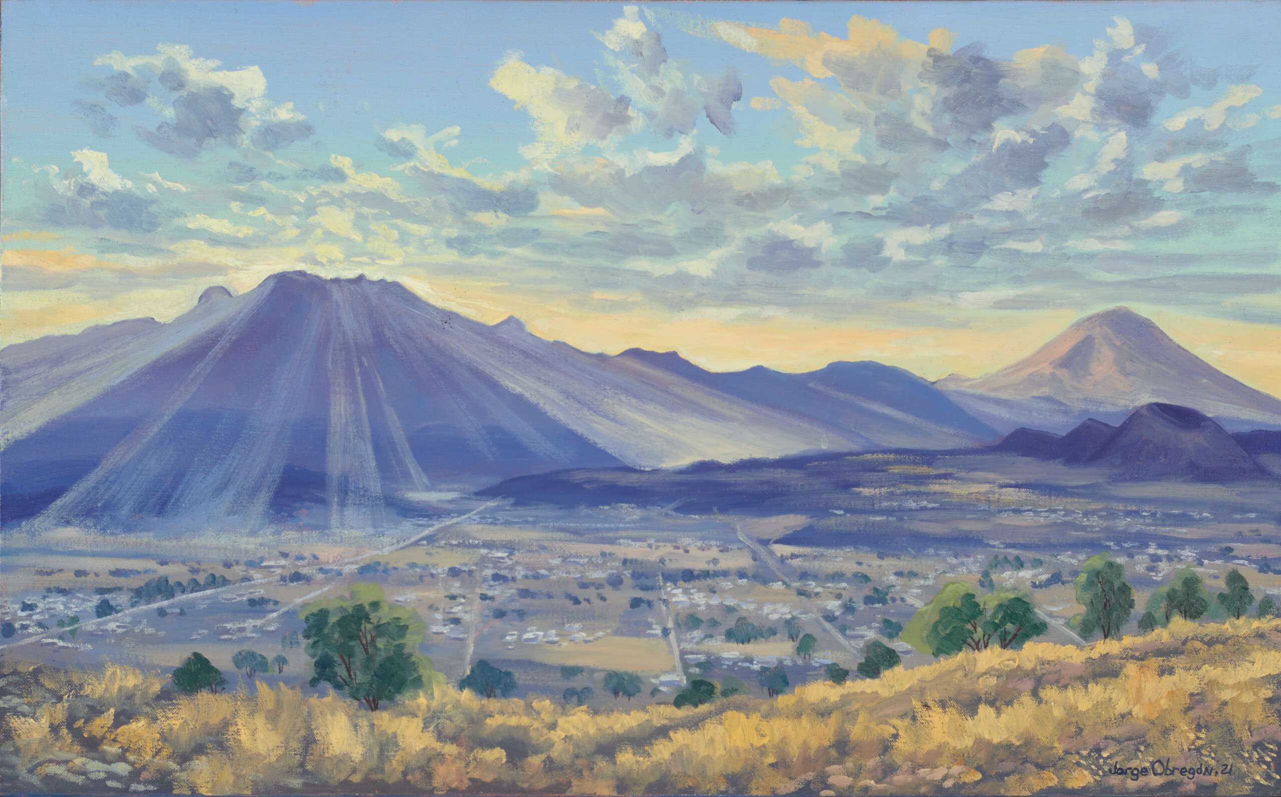 La exposición nace del proyecto de Jorge Obregón que mereció su ingreso en el Sistema Nacional de Creadores de Arte en el año 2020. Se trata de una serie de obras de paisaje integradas en un planteamiento conceptual y un proceso de investigación de tres años que contempla el cruce entre la pintura, la antropología, la astronomía y el archivo documental.