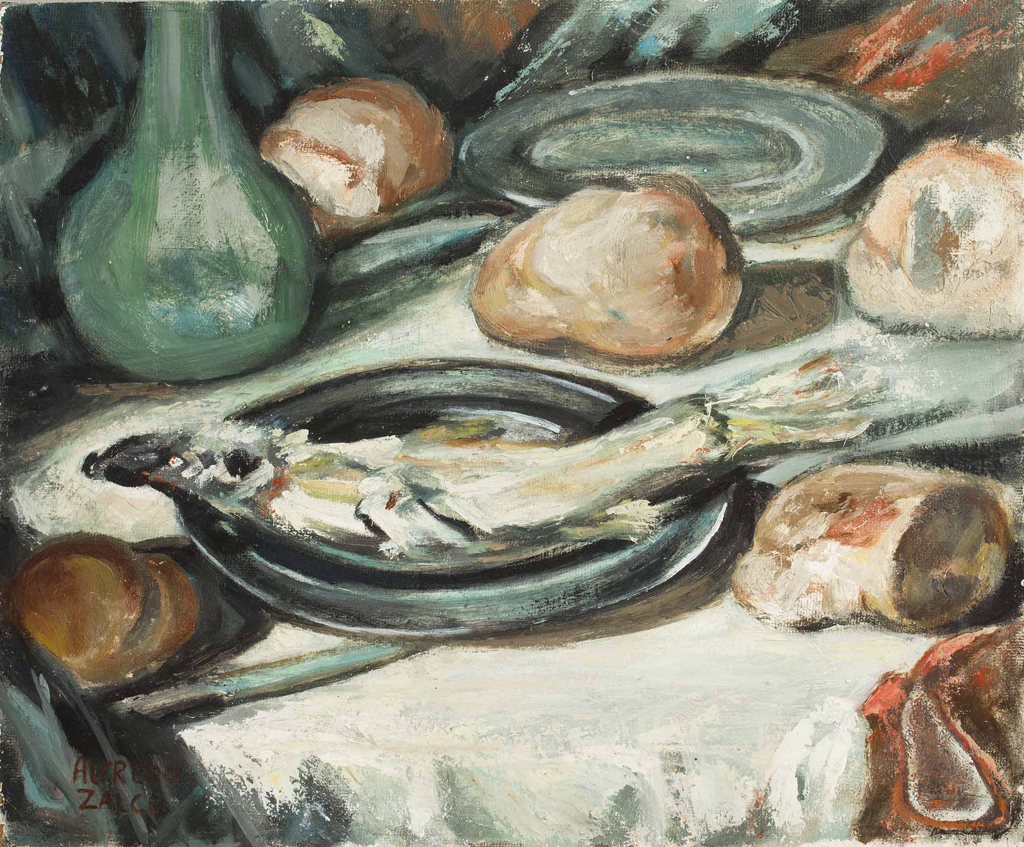 Alfredo Zalce Bodegón con pescado, 1971 Acrílico sobre masonite Colección Kaluz