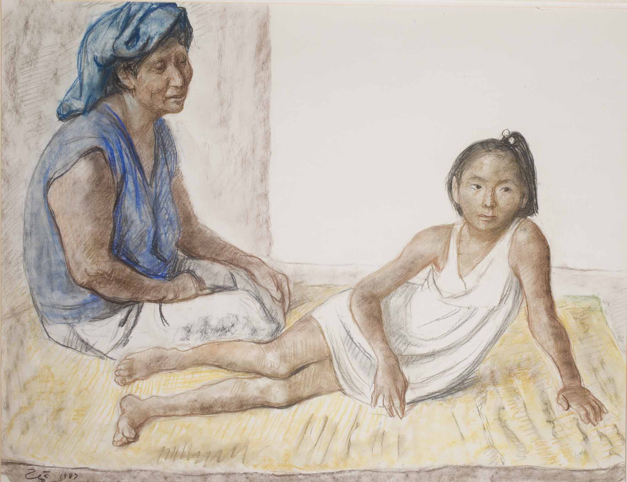 Mujer y niña sentadas, 1987